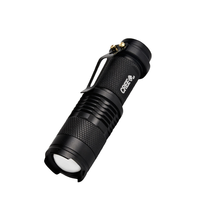 【產品型號】:SK68 【燈珠型號】:CREE Q5 【鏡片材質】:光學凸鏡 【工作檔位】:3檔 【適用電池】:14500電池 【流明亮度】:350流明 【產品材質】:鋁合金 【工作電壓】:3.7V 【光源色溫】:6000K 【產品顏色】:黑/紅/藍/綠/銀/迷彩色 【產品燈杯】:無 【可否直充】:否 【是否調焦】:伸縮調焦 【產品重量】:63g 【產品特點】: 1.燈珠:美國進口CREE Q5燈珠,最高亮度350流明,使用壽命100,000小時; 2.伸縮變焦:上下拉伸頭部,可調節散光-聚光模式,方便照明使用; 3.高韌性抱夾:采用高韌性鈦金材質便攜攜帶,可以夾在妳想得到的地方; 4.尾部開關:優質天然橡膠材質,表面防滑處理,輕觸開關切換照明模式; 5.尾部觸點:內置彈簧結構,表面鍍銅接觸面,有效防止短路,接觸不良。